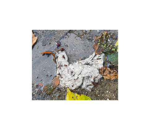 In Zaansgroen laat hij ook ‘Droppings’ zien. Een fotoserie die bij toeval is ontstaan op een terras in